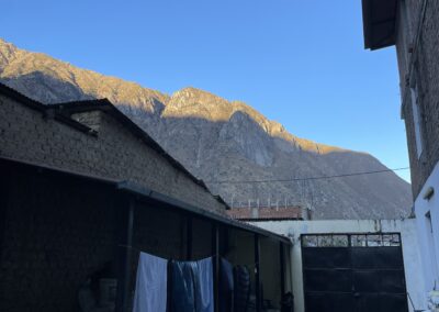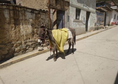 We crawled on bit by bit but as the air got thinner and energy levels sank, we decided to stay in Surco for the night rather than cycling on to Matucana. It was early in the afternoon so we still had quite some time ahead of us so we went to the place where Google and Apple Maps promised we’d find a camping. After pushing our bicycles up a steep, bumpy gravel road, we were sorely disappointed when the campsite no longer turned out to exist. Instead, we found a small uneven patch of grass with a donkey happily grazing in its midst.