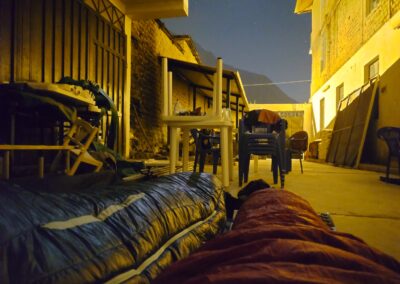 At the end of the day, we lay on the ground in our sleeping bags looking at the night sky and listening to the cheerful melody of traditional Peruvian folk music of the fiesta next door. What a pleasant day and what a pleasant ‘noise’ to fall asleep to compared to the traffic from the previous night 🙂