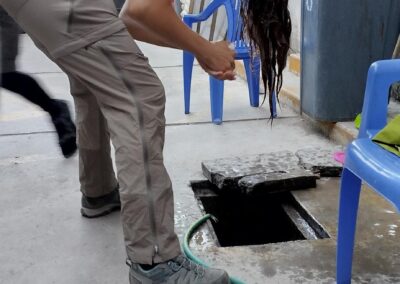 When we saw the patio, we decided that this place was definitely both safer and more convenient than sleeping on the donkey’s little pasture. To our surprise the police were okay with it and so we were in high spirits when we packed our towels, swimming clothes and such for our hike to the waterfall. We profusely thanked our helpers and the police for their kindness. Because two people were still busy working in the patio one of the police guards brought a chair and sat guard in front of our bicycles the entire time. What kindness!