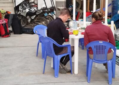 Apparently word of our presence there started to spread and more and more people started coming to our nice little green patch by the stream. So as the sun was starting to sink behind the mountain range, we made our way back down into the village. We had some delicious Spaghetti for dinner (shout out to Jacques, our cook) and the luxury of electric light and a socket to charge our appliances with.