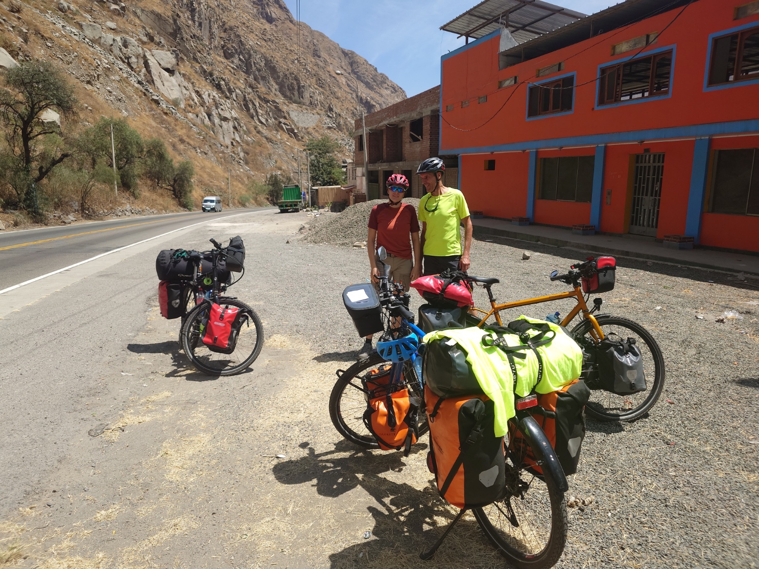 We got up at 5:45 AM, had breakfast, packed our belongings and got ready to cycle again. Leaving Lima was a very gentle incline but already being a bit further up in the mountains now the climb was steeper. The continuous incline and the burning heat of the sun made for a strenuous ride and we needed several short breaks for a bit of rest and to stay hydrated. Because the highway had no shoulder on our side of the street attempting to drink while cycling was out of the question. At least the traffic had calmed down a bit and was not as terrible as in Santa Clara or Chosica, albeit still dangerous.