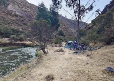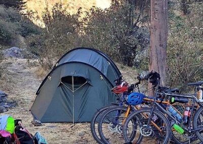 Safely leaving the tunnel and the police behind us, we continued our climb up. It was still hard, but not as strenuous as the first time around. We arrived at our previous campsite within good time, carried our luggage and bikes across the river and set up camp. It was a bit confronting to be back at the place where I had felt so ill only a few days prior, but the beauty of the scenery quickly let me forget. While Jacques had a little nap, he was the one not feeling so great this time, Göran and I went for a small hike before we cooked dinner later that evening and went to bed.