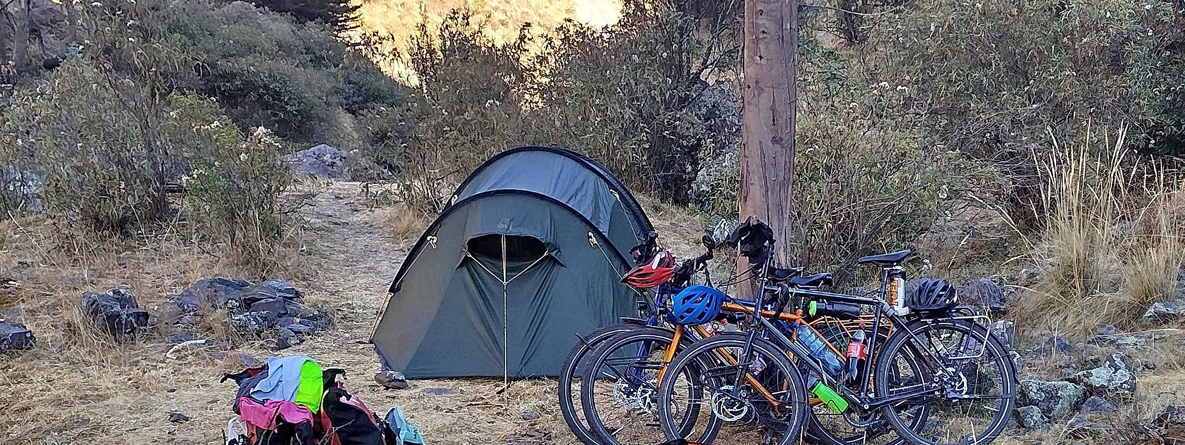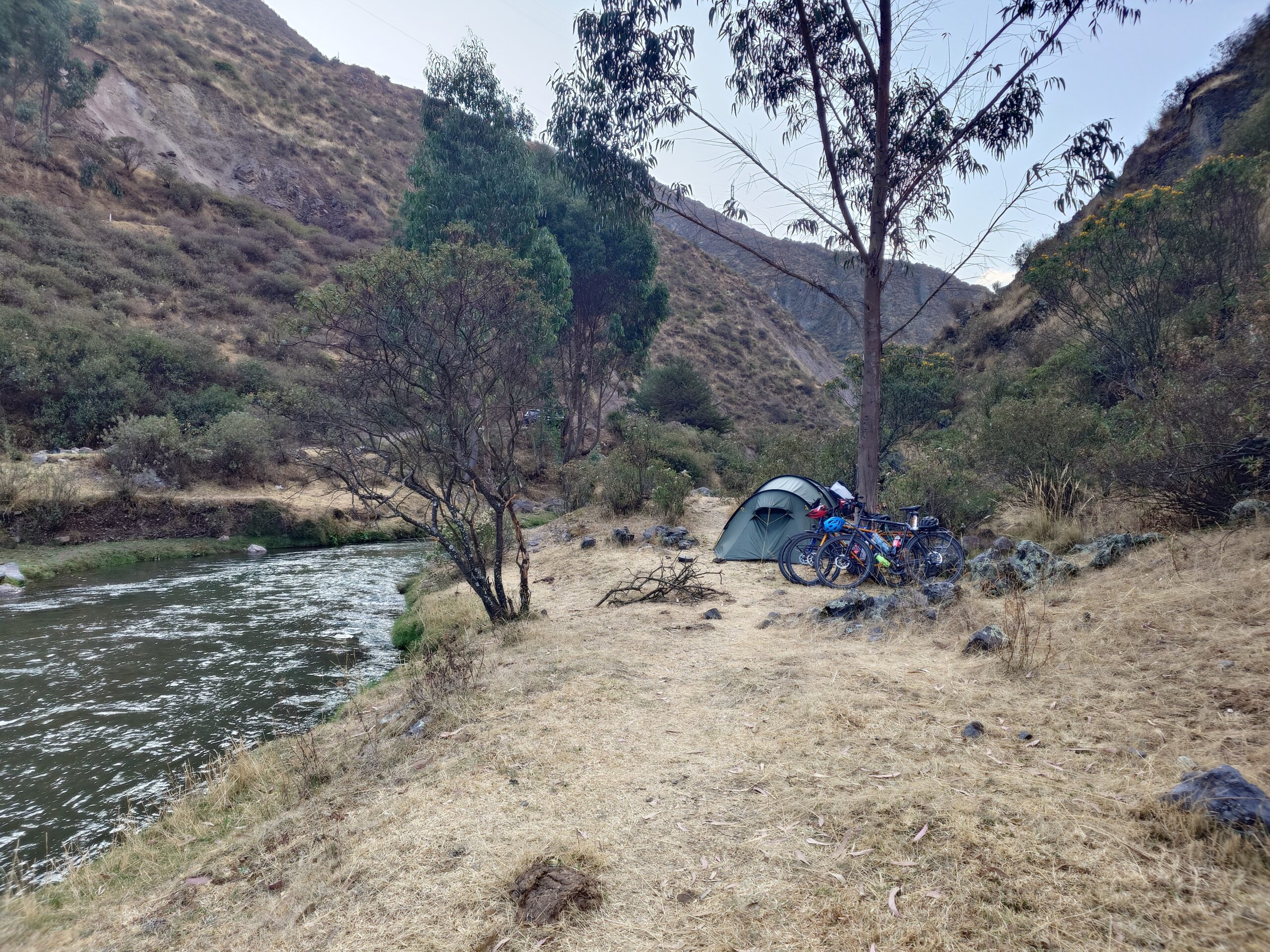 Safely leaving the tunnel and the police behind us, we continued our climb up. It was still hard, but not as strenuous as the first time around. We arrived at our previous campsite within good time, carried our luggage and bikes across the river and set up camp. It was a bit confronting to be back at the place where I had felt so ill only a few days prior, but the beauty of the scenery quickly let me forget. While Jacques had a little nap, he was the one not feeling so great this time, Göran and I went for a small hike before we cooked dinner later that evening and went to bed.