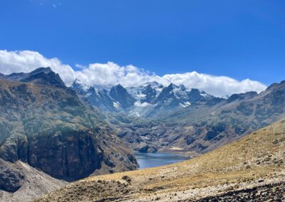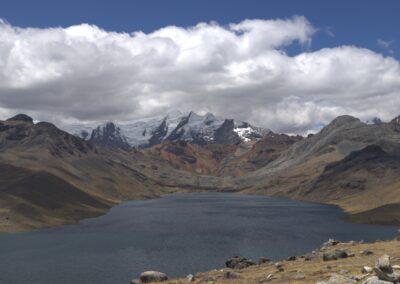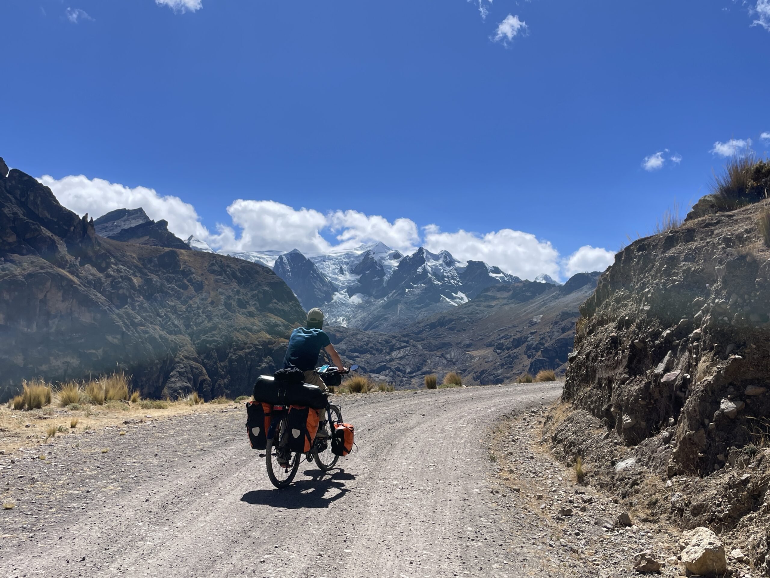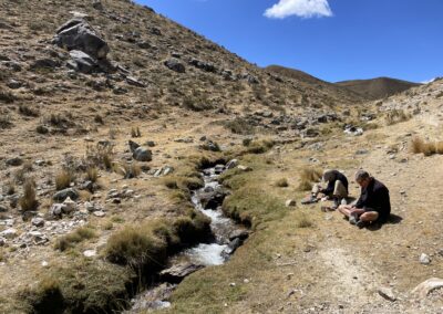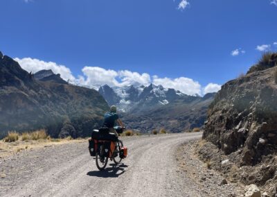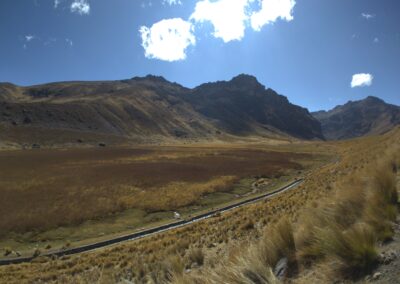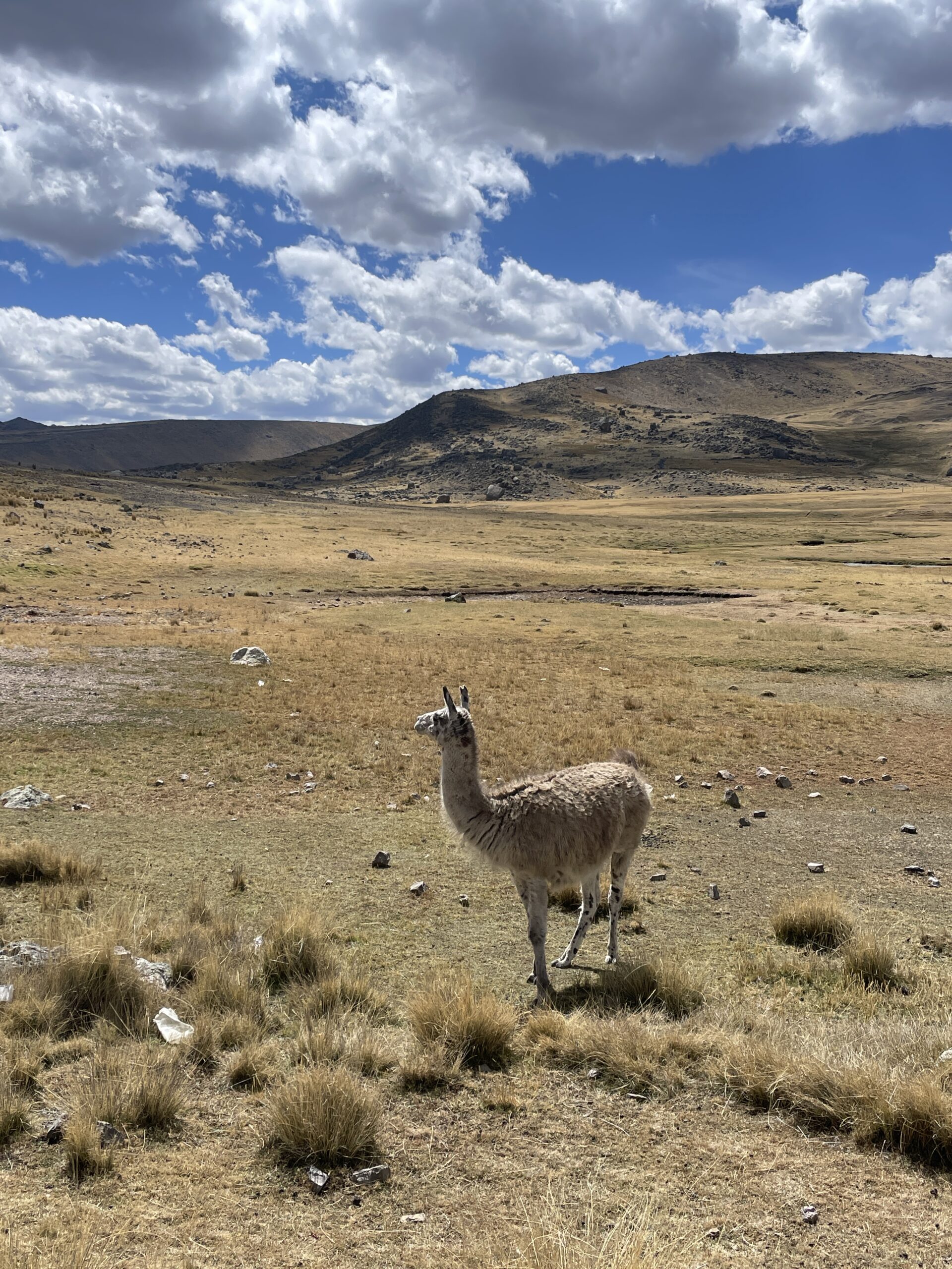 The climb was strenuous and my legs were tired from all the previous days of cycling or pushing my bicycle uphill (or should I say up-mountain?). After we finally reached the pass, we cycled downhill in the freezing wind, which managed to penetrate nearly all our layers of clothing. Because it was so cold, we decided to cycle on despite it being well past lunch time and our stomachs were grumbling. After another hour, we cycled around a bend and suddenly faced a huge flock of Alpacas and llamas. We were delighted to see them and as we stood there watching we realized that there was barely any wind. On top of that, the sun came out too so we decided to have a snack, right there amongst the namesakes of our blog, before facing the remaining 8 km to Tanta, where we intended to have a proper warm lunch.