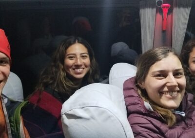 When everything was safely packed and all of the crew were in the bus, we went on our way to Huancaya. I sat next to Alexia’s sister, Audrey, who was just as kind and outgoing as her older sister. What a kind family (at least the ones we had the pleasure of meeting)! We were happy everything had worked out because we were tired, cold, and the way to Huancaya turned out to be pretty long after all. Even by bus it took us more than 45 min. When we arrived, we said our heartfelt goodbyes, well-wishes, and deep gratitude towards the Gaitán Castros. After a picture to commemorate this bizarre and special encounter, we parted ways. They would drive back to Lima that night whereas we would stay in Huancaya. We stayed in the hostel of one of Diosdado’s acquaintances. We didn’t pay much attention to what it looked like that night. We were just happy that we could safely store our bikes in the patio, had a bed, and a roof above our heads. We went to a restaurant for dinner and finally went to bed at around 10:15 PM (very late for us!).