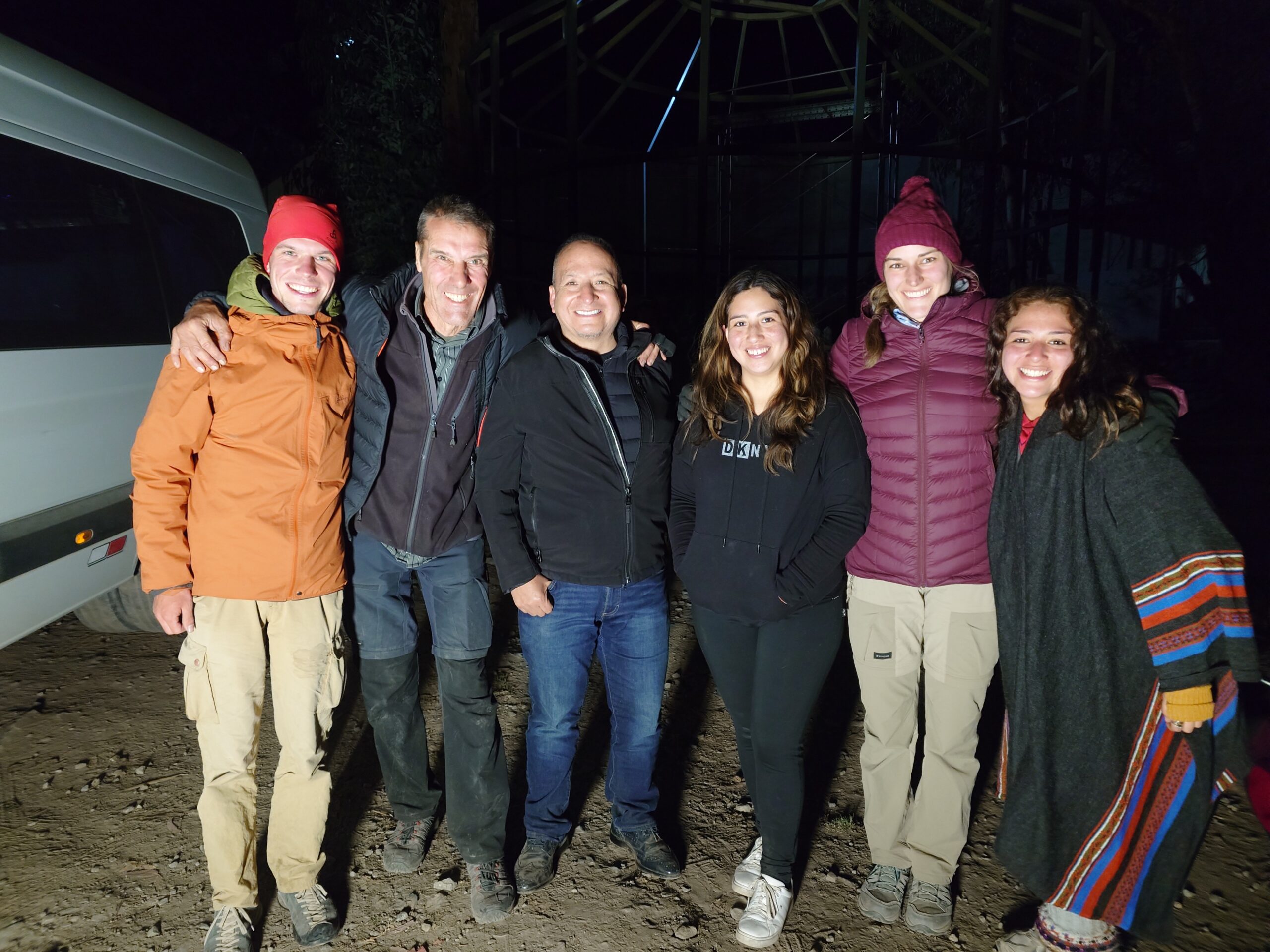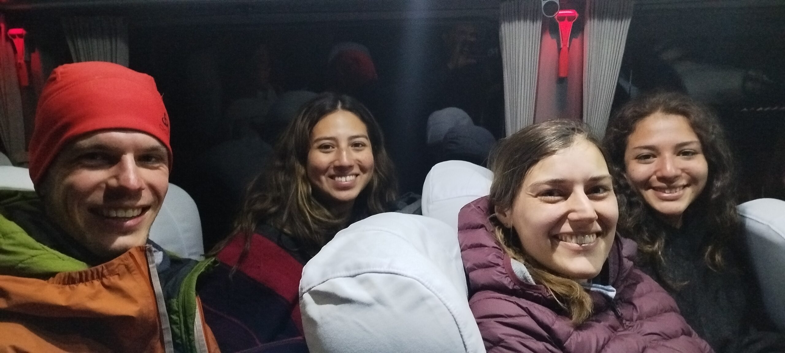 When everything was safely packed and all of the crew were in the bus, we went on our way to Huancaya. I sat next to Alexia’s sister, Audrey, who was just as kind and outgoing as her older sister. What a kind family (at least the ones we had the pleasure of meeting)! We were happy everything had worked out because we were tired, cold, and the way to Huancaya turned out to be pretty long after all. Even by bus it took us more than 45 min. When we arrived, we said our heartfelt goodbyes, well-wishes, and deep gratitude towards the Gaitán Castros. After a picture to commemorate this bizarre and special encounter, we parted ways. They would drive back to Lima that night whereas we would stay in Huancaya. We stayed in the hostel of one of Diosdado’s acquaintances. We didn’t pay much attention to what it looked like that night. We were just happy that we could safely store our bikes in the patio, had a bed, and a roof above our heads. We went to a restaurant for dinner and finally went to bed at around 10:15 PM (very late for us!).