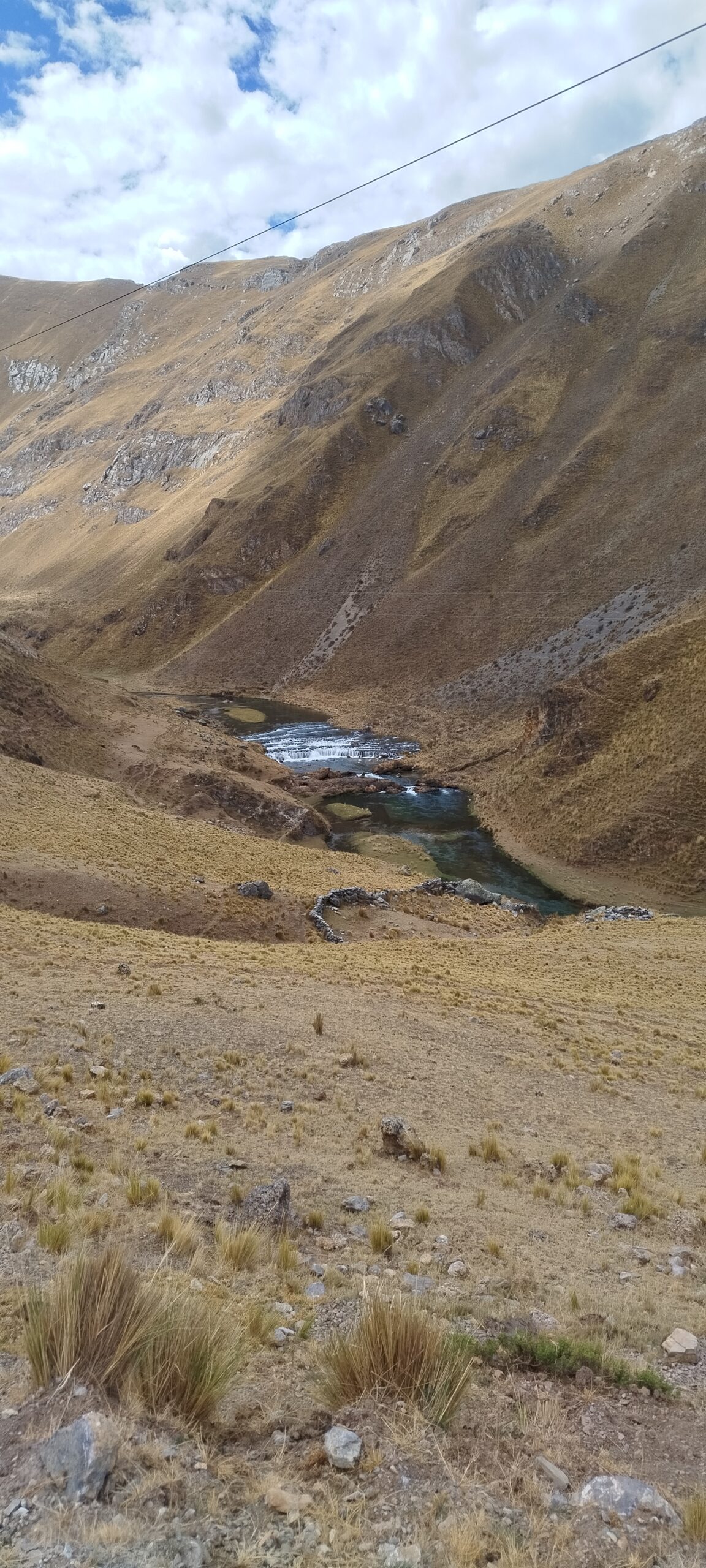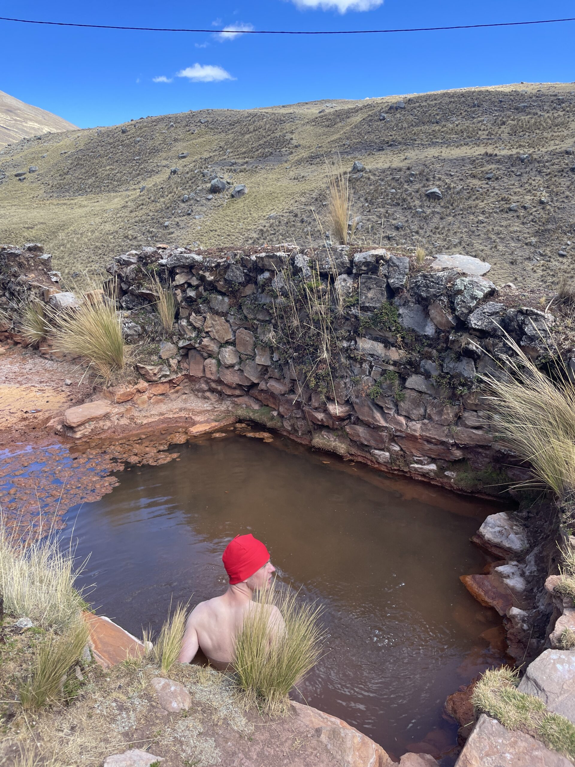 Today’s route would take us further through the nature reserve and past a ‘baño del inca’ (a hot spring tied to Inca history). Although a short fairly light climb for a few kilometers out of Tanta reminded me of just how sore my legs were, this was quickly forgotten after we were surrounded by beautiful and diverse scenery on our way down the valley through the national park (I looked it up for you, it’s ‘Nor Yauyos-Cochas’). Around 8 or 9 km after we left Tanta we arrived at the baño del inca. It was a very mineral-rich natural well surrounded by old stone walls with small shrubs and wallflowers growing between the cracks. You could see the bubbles of the water and oxygen that were rising from somewhere deeper in the earth’s crust until they met us at the surface of the small pool. After days of dips in icy mountain rivers and cold showers we were very excited at the prospect of soaking in a warm bath. Alas, the definition of a baño del inca doesn’t put that much emphasis on the ‘hot’-part and more on the ‘spring tied to Inca history’-part. While the water was warmer than the rivers we bathed in, calling it warm was a far stretch.