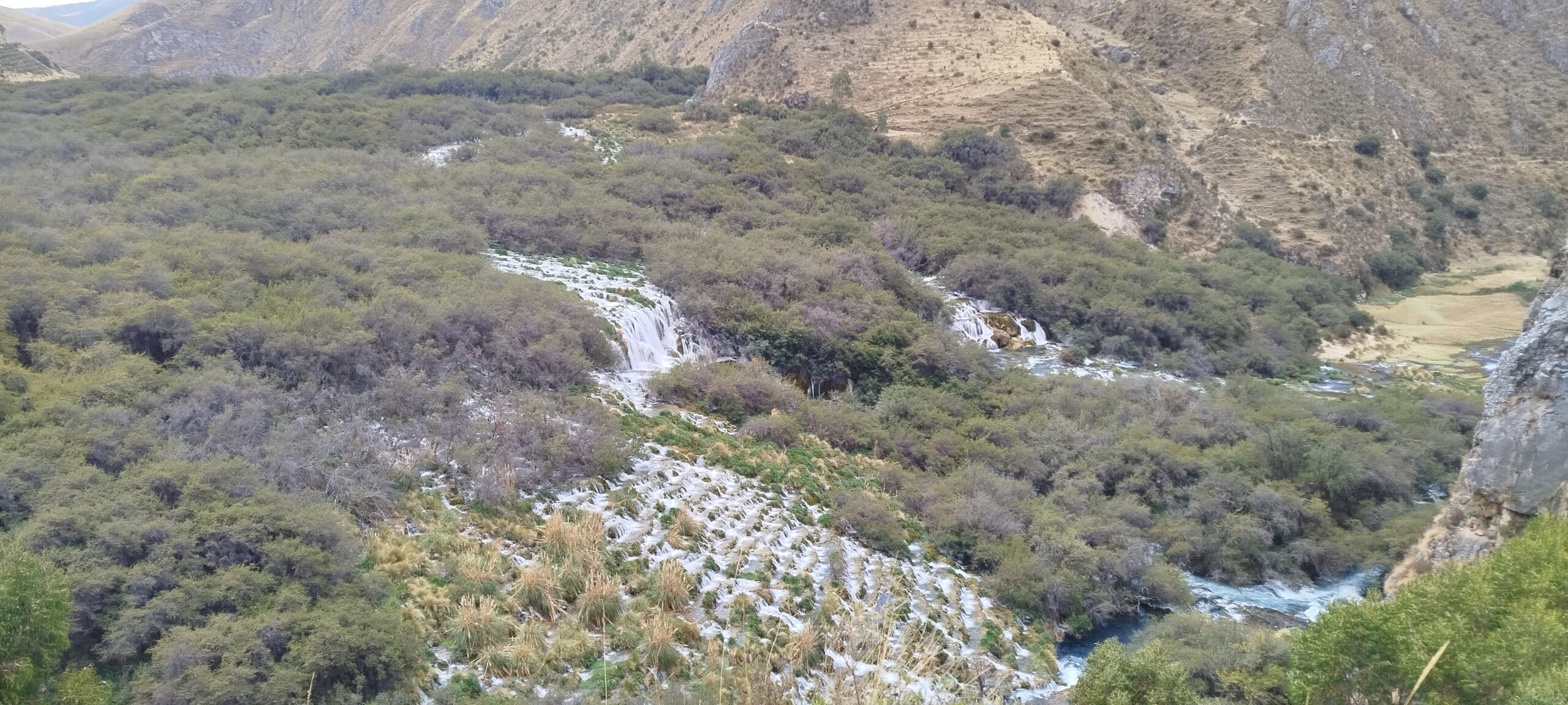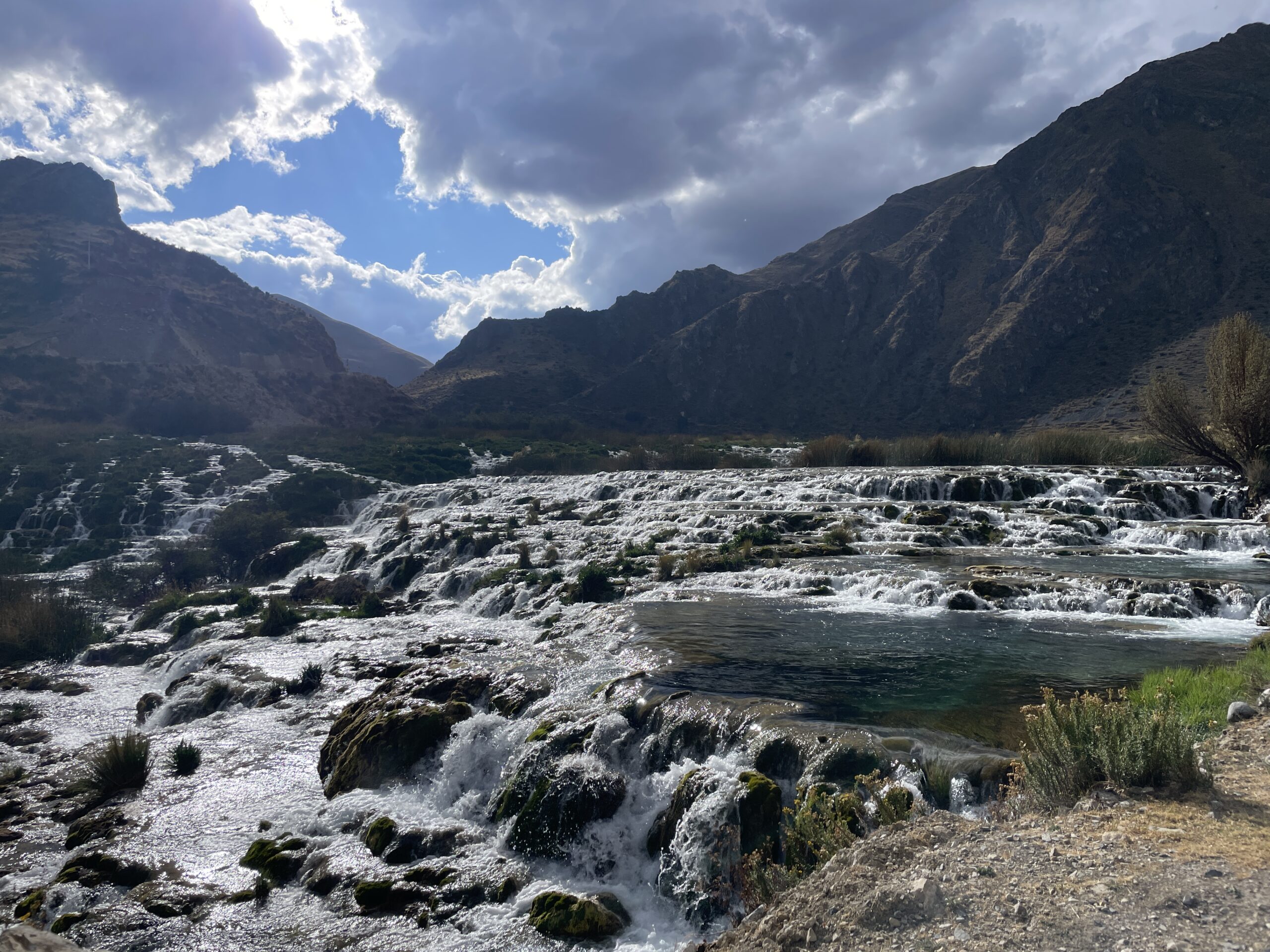 Shortly before Huancaya there was a particularly nasty slope, but around its corner was a beautiful laguna which gave way to one of the most extraordinary natural wonders I had ever seen: the laguna spilled over into hundreds of little waterfalls which were cascading their way down to the village of Vilca in dozens or hundreds of little overflowing pools. This sight alone would have been special enough, but what made it even more amazing was the forest growing in the water of the cascades. With our phones we weren’t able to take any pictures or videos which could properly capture just how special this place was, so I recommend googling it for better pictures or videos on YouTube.