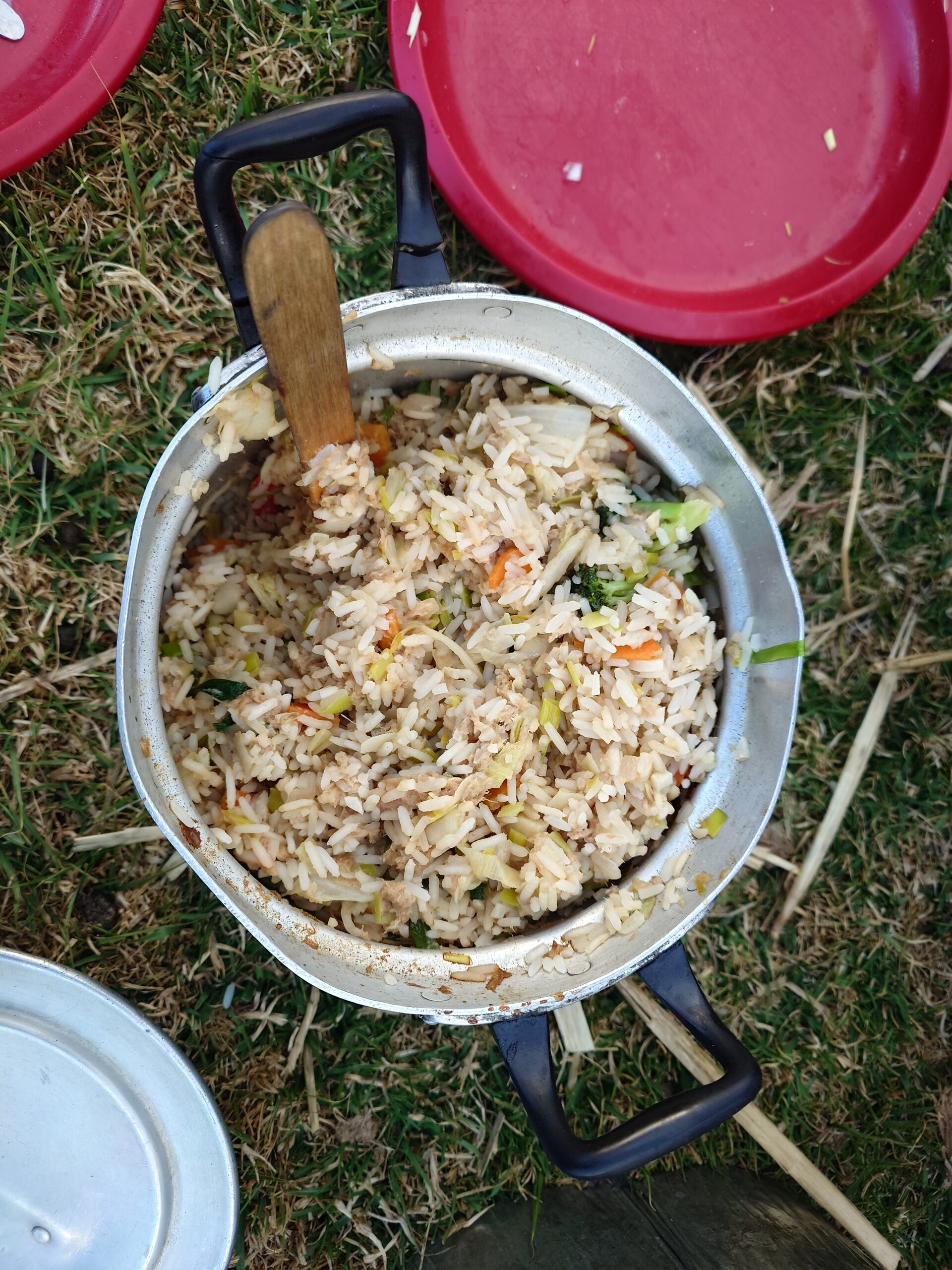 We cycled on until we found a good place to stay the night. It was a beautiful patch of greenery close to the main road but out of view (and most of the noise) by a little hill that was separating it from the main road. That night Chef Jacques made Nasi Goreng which was delicious and we all enjoyed it very much, while Göran and I set up the tent once again. With full stomachs and the content of already having cycled so much, we went to sleep happily.