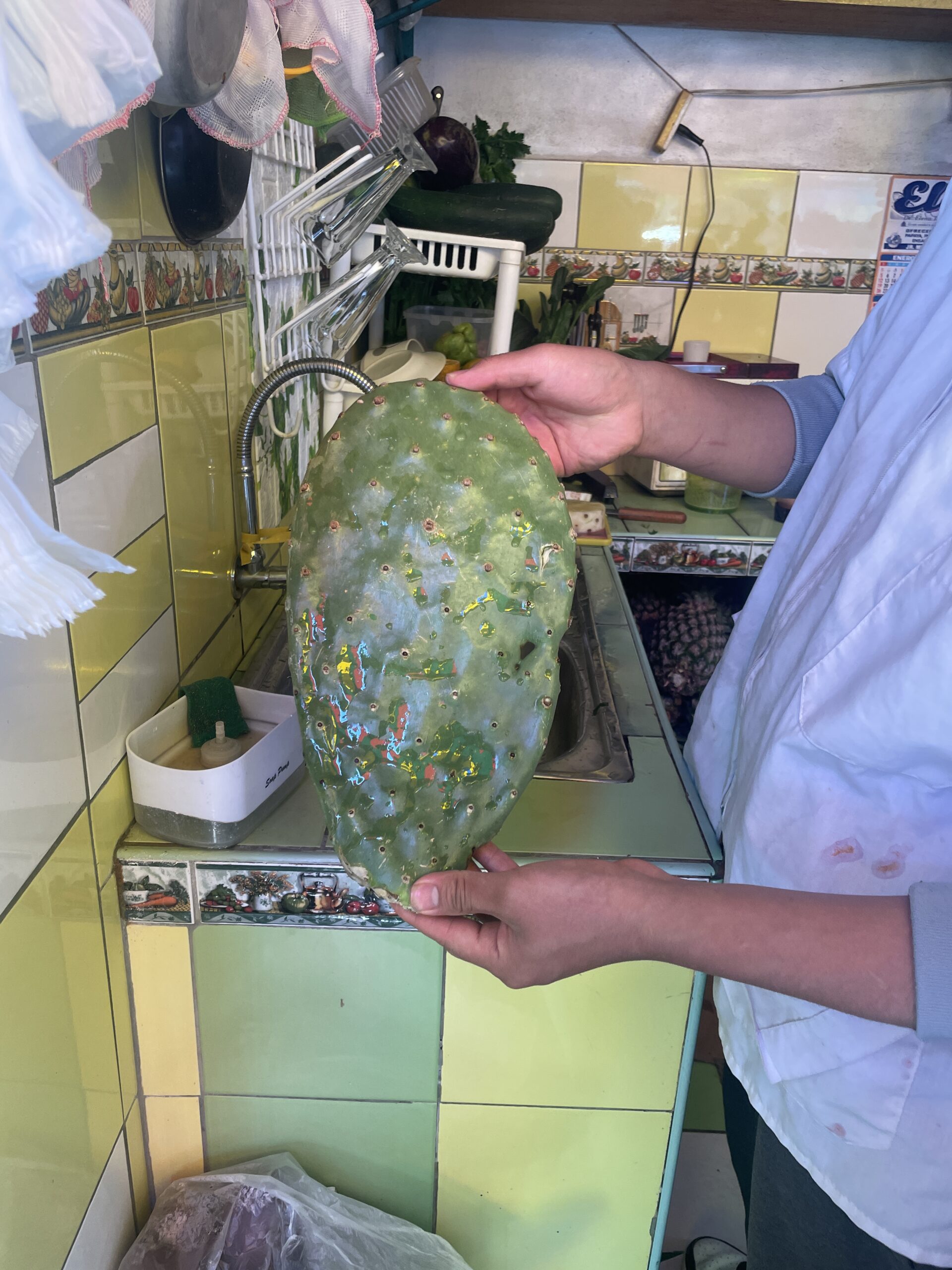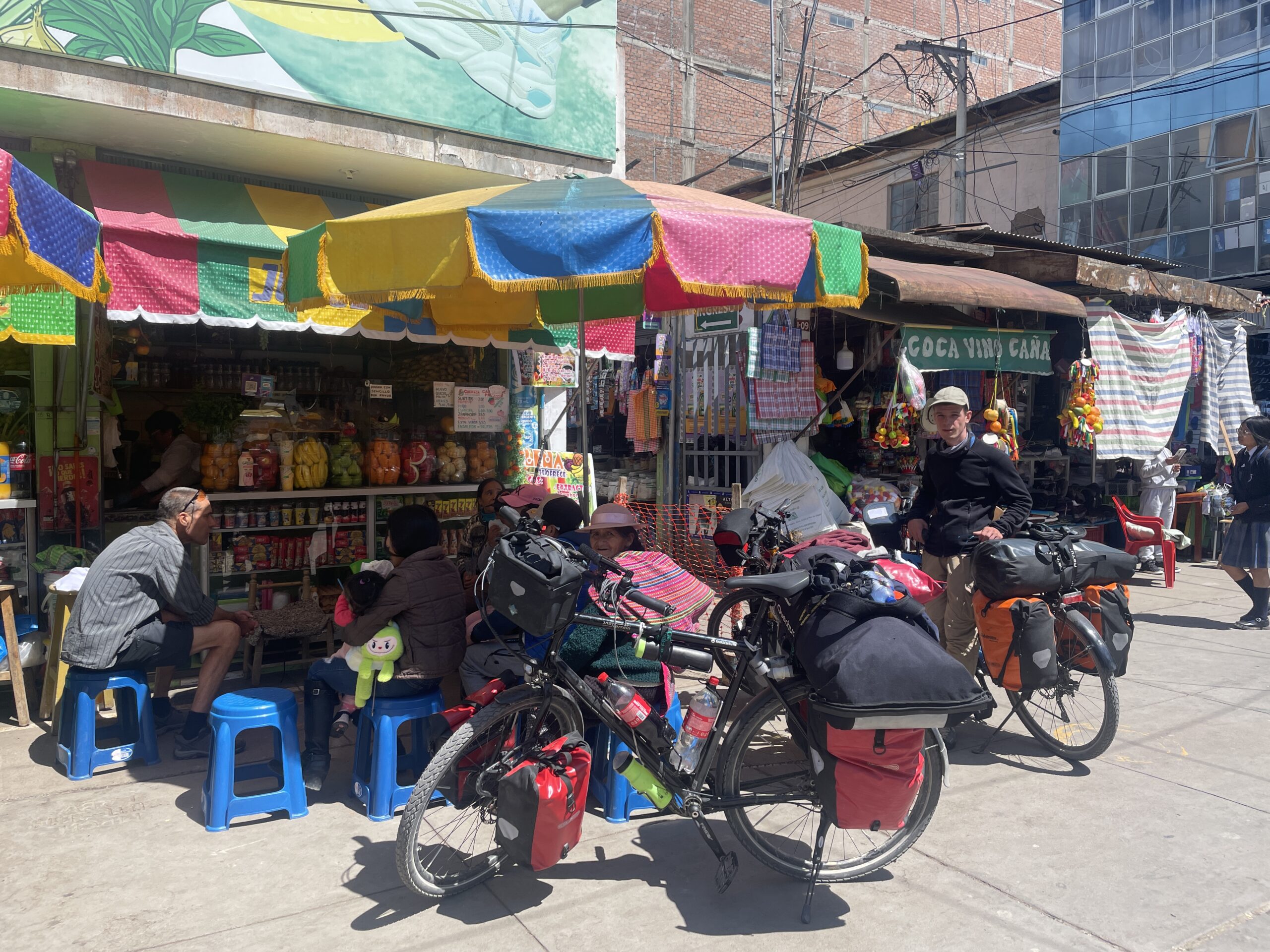 In the morning we made use of the fact that ATMs were available one more time (they are hard to come by in the tiny villages we usually pass through) and bought fresh produce such as vegetables and bread. Although we were eager to head out of the noisy town we found one thing that made us stay a bit longer: Next to the market there were little stalls that sold fresh smoothies, fruit juices, homemade breakfast cakes, and buns with fried egg or cheese. So we sat down amongst the locals and had a fresh smoothie with banana, cactus, beetroot juice, apple and another fruit that I didn’t recognize the name of when the local said it. It was delicious and while the men took a ‘pan con huevo’ I opted for the home baked breakfast cake. Everyone who knows me knows that I have a weakness for pastry and good versions of those are hard to come by over here.