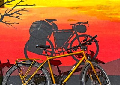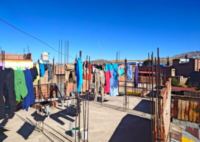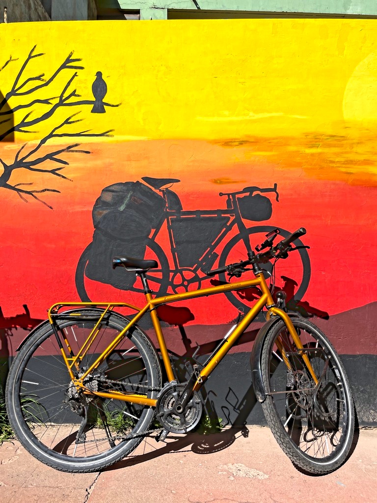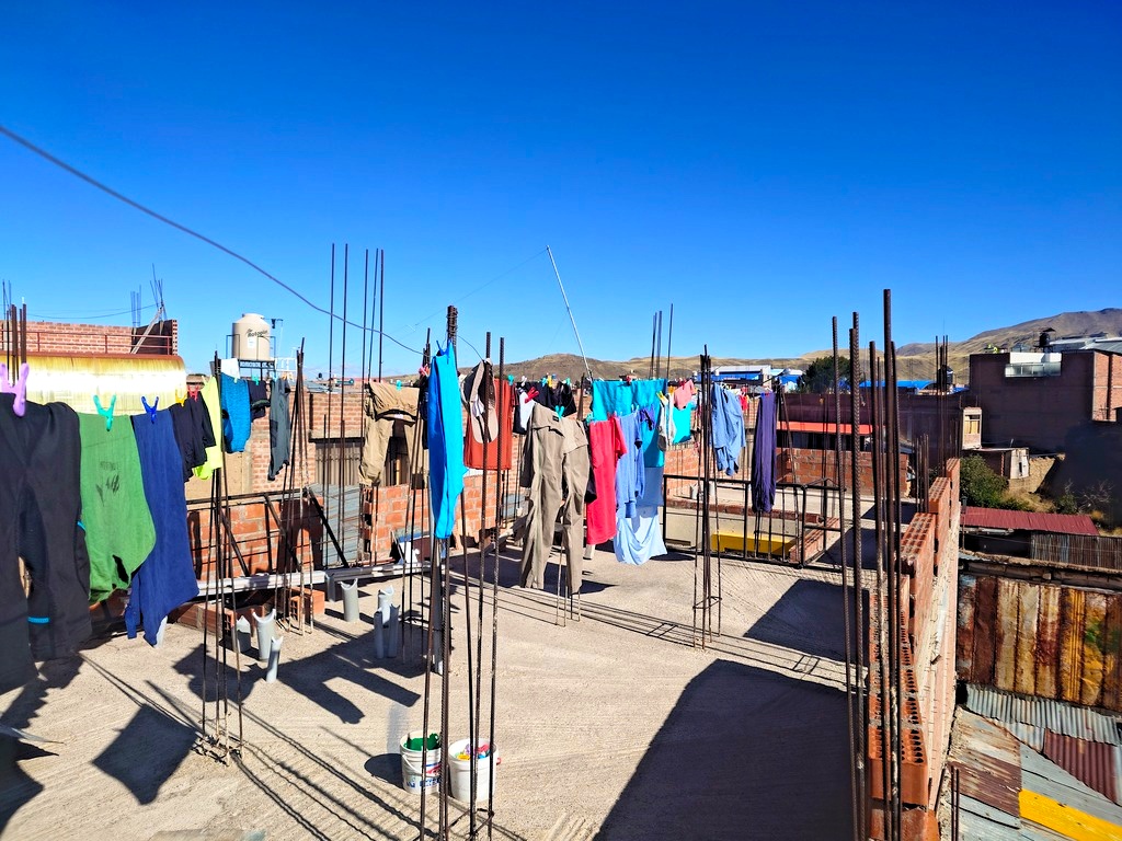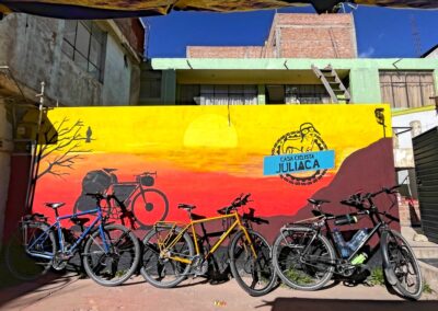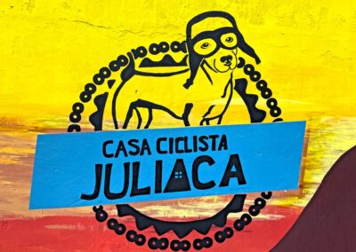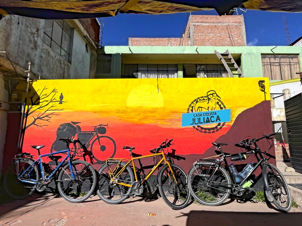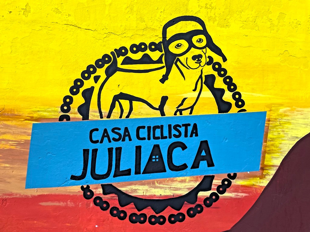 On the 21st Jacques arrived in Juliaca on his bicycle and Göran and I by motorized transport. The latter had been quite the hassle to organize so I was once again very glad that Göran’s Spanish is so good and that he was kind enough to stay with me out of safety, giving Jacques the opportunity to do what he really wanted: to cycle at his pace and as far as he wanted. The bus had dropped us off on the outskirts of the pretty big city so we cycled to the Casa Ciclista which was insane with the traffic conditions. I have to admit that Iván had laid the bar for a Casa Ciclista pretty high in Ayacucho with how kind he was and how at home we felt at his place. There was no need to worry though because neither the Casa Ciclista nor its owner disappointed in the slightest way. Luckily, the Casa Ciclista is in a calmer part of Juliaca but still quite close to the centre. When we entered we were greeted by the sight of beautiful, colourful cycling-motivated murals, a small garden with roses in it, a Hollywood swing (which I sort of annexed while I was there), a large seating area outside and two concrete sinks – one for doing laundry and one for doing the dishes. While the murals and the swing already sold me on this place, the owner Giovanni managed to do so even more. He is a very kind, welcoming, open-minded cycling- and travel enthusiast. After sitting in the garden and chatting for a while, we got our rooms ready, had lunch (thanks for the stomach-friendly mashed potatoes dad! Finally something my stomach could take other than soup with mushy noodles from the restaurants). Afterwards I am not sure what happened because I napped on the Hollywood swing for two hours. Afterwards, we had dinner, decided to make the next day yet another rest day for the sake of my health and went to bed.