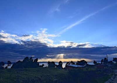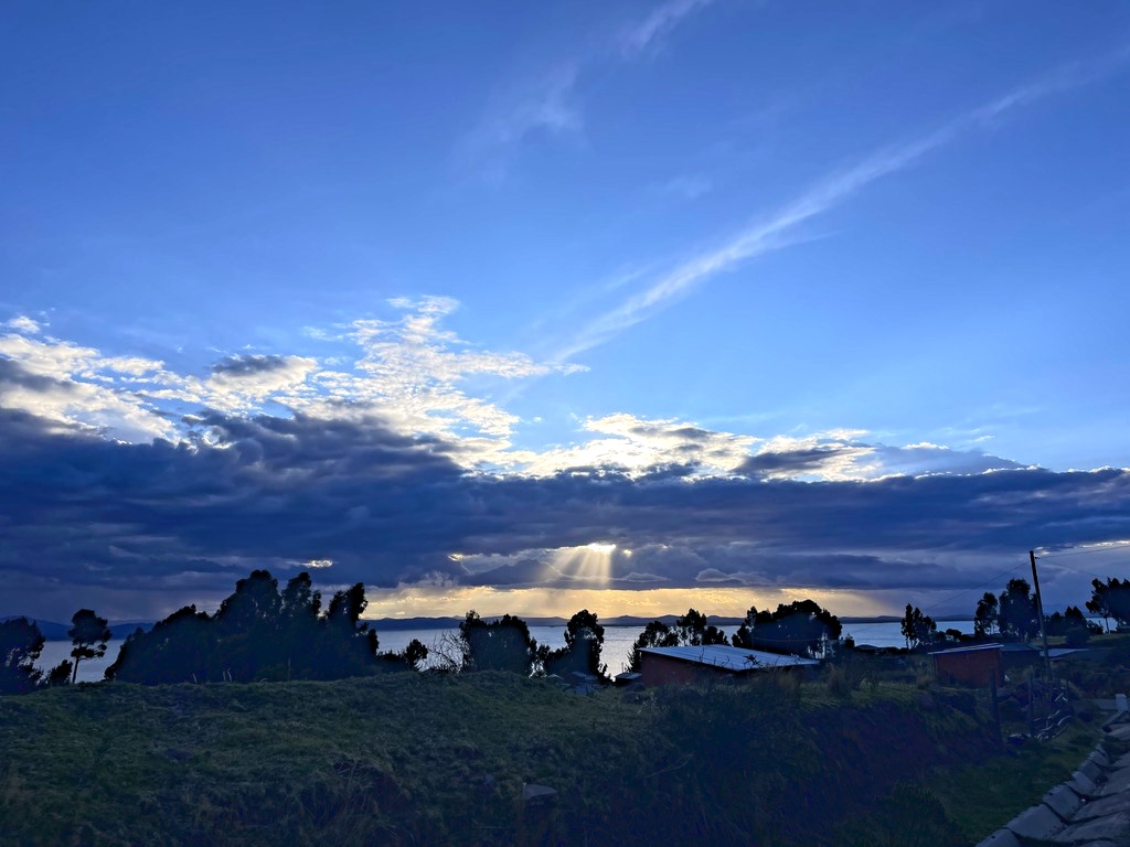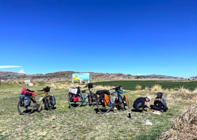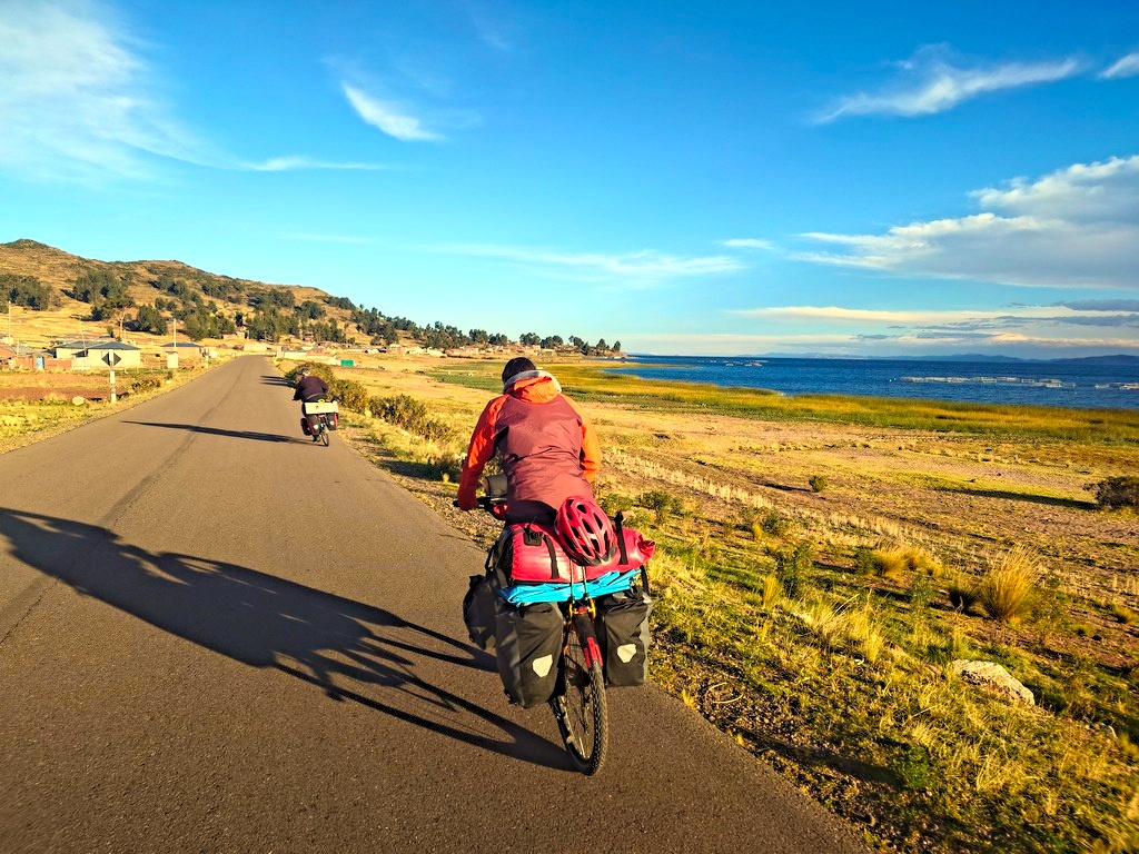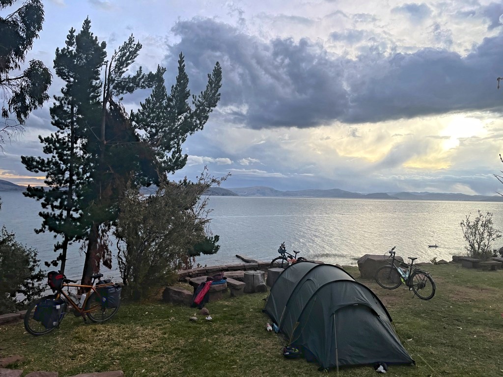 Eventually, we reached Llachon in the early evening, where Casa Valentin had been recommended to us as a beautiful campsite — and it didn’t disappoint. Apart from the nicely level, soft patch of grass where we could pitch our tent, the location boasted a beautiful view over Lake Titicaca and even a white sand beach. We instantly liked the place. To our surprise, the only other people we met at the accommodation were all French without exception, instead of the usual diverse mixture of different nationalities we usually encounter in touristic areas. All of them, without fail, were very kind people though. Especially the ones we were going to meet tomorrow…