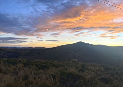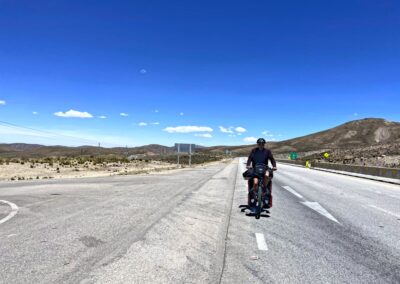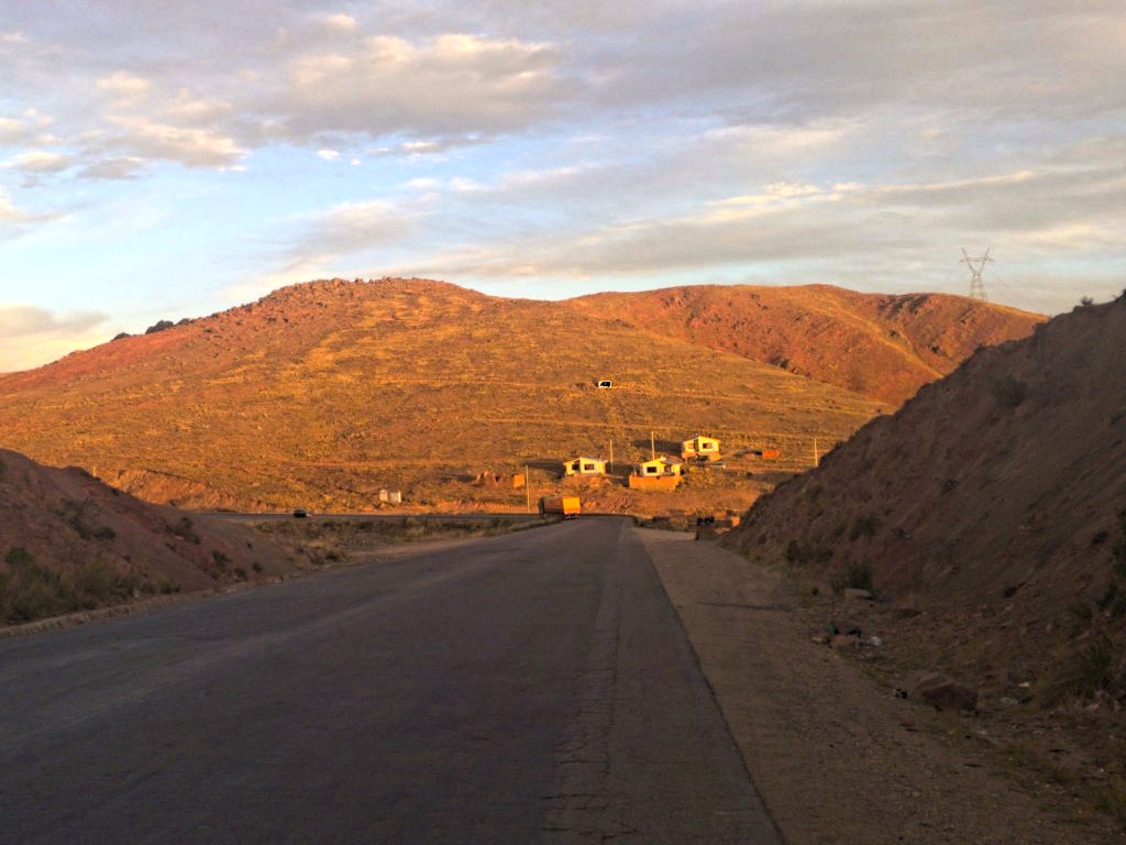 After dinner it was still quite windy but already quite late, but none of us wanted to stay in that ugly village in the tent and even less in the alojamiento that it had. So we decided to cycle on for another hour until we were lower where it would be warmer and where we would hopefully find a suitable place to pitch our tents. So motivated by the hideousness and unpleasant atmosphere of the town we were in, we got back on our bikes at twilight and continued onwards.